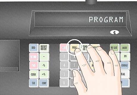Program your register. Most registers have buttons that can be programmed to categorize similar items. These categories, or departments, can also be associated with taxable or non-taxable items. You can also set the date and time. The program function is usually accessed by either turning the key to PRG or P, or pressing the mode button to PROGRAM. Other registers may have a manual lever underneath the receipt tape cover that needs to be switched to a Program option. Many cash registers have at least 4 tax buttons. These can be programmed at different tax rates, depending on if you have a flat sales tax as some states in the U.S. do, or if you have other types of taxes, such as GST, PST, or VAT rates (depending on your location). Follow the specific instructions in your register's manual to program these functions.