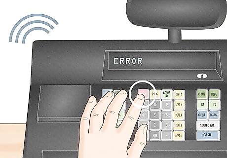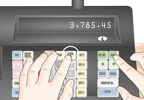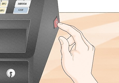 Turn the cash register on. Some cash registers have an ON/OFF switch on the back or side of the machine. Others may have a key on the front top of the machine. Turn on the machine, or turn the key to the REG (register) position. Newer registers may have a MODE button instead of a physical key. Press the MODE button to scroll into a REG or operational mode.