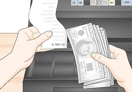 Balance the cash register. After running the sales report for the day, count out the money in the cash drawer. If you have checks or credit card receipts, add these into the total. Most credit card processing machines will also run daily total sales reports, so that you can easily reconcile your daily sales totals. Subtract your overall total from the amount of money that you started with before your first transaction of the day. Put all your cash, credit card receipts and checks into a deposit bag and take them to the bank. Keep a written ledger of the currency, credit card transactions and checks. This will help with your overall accounting. Replace a base amount of money to the drawer for the start of the next business day. Be sure to store the money in a safe, secure location when your business is not open.