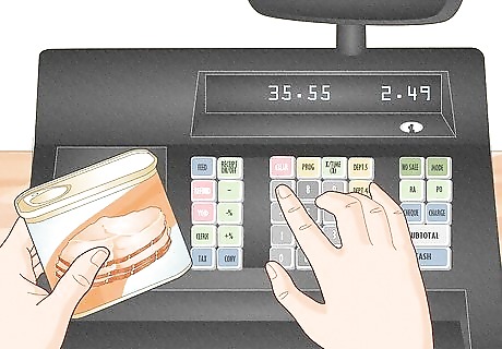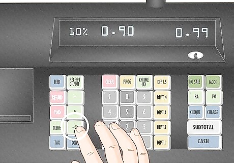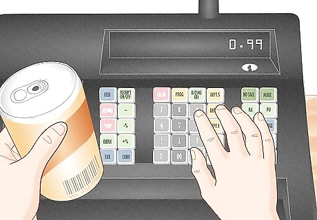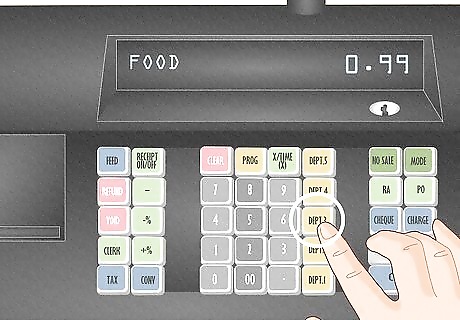 Add any necessary discounts to the price. If an item is on sale, you may need to enter in the percentage discount. Key in the price of the item, hit the department button, key in the discount percentage number (15 for 15% off, for example), and then press the % key. This key is usually in the bank of buttons to the left of the number pad.