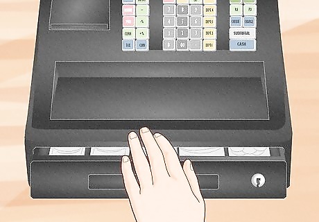 Close the till drawer. Always close the cash drawer immediately after you use it so that it is not left hanging open. This could put you at risk for theft. Always empty out or remove the till drawer at the end of the business day and store it in a secure place.
