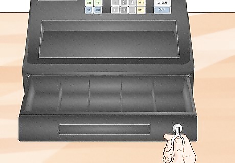 Unlock the till drawer. The till drawer usually has a key that locks it up for safety. Do not lose this key. You can just leave the key in the drawer when it is unlocked so that it is easily found when you need to lock it up.