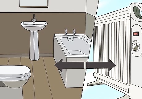 Keep a portable heater away from water or damp places. Damp locations like a bathroom or basement can cause problems with heater safety. Don't touch a heater with wet hands, which can lead to an electrical shock.