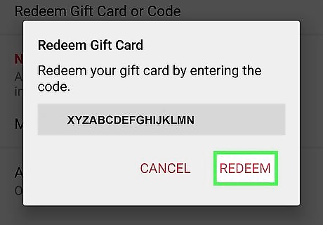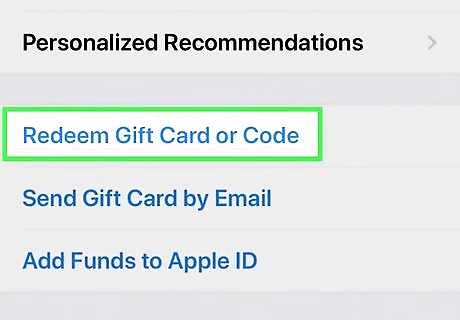 Tap Redeem Gift Card or Code. It's near the middle of the screen. If you don't see this option, follow the on-screen instructions to sign in with your Apple ID.