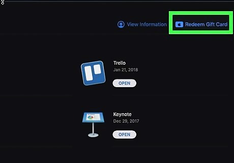 Click Redeem Gift Card. It's at the top-right corner of the window.