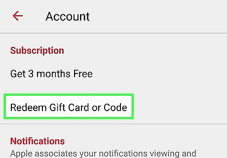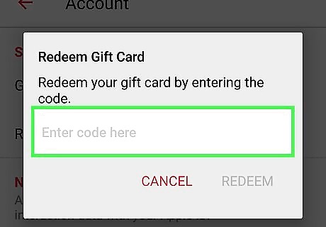 Tap Redeem Gift Card or Code. It's on the Account menu.
