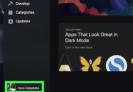 Click your name. It's at the bottom-left corner of the App Store. If you're not already signed in, you'll find a sign-in option at the bottom-left corner instead. Click it to sign in with your Apple ID, and then click your name.
