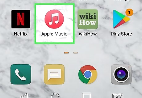 Open Apple Music on your Android. It's the multicolored music note icon in your app drawer. If you haven't installed Apple Music yet, you can get it for free from the Play Store, which is the sideways triangle icon in the app drawer.