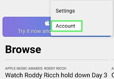 Tap Sign In to log in with your Apple ID. If you're already signed in, you won't see this option and can skip to the next step. Otherwise, enter your Apple ID login and password to sign in now. After signing in, return to the three-dot menu and tap Account, then continue to the next step. If you don't have an Apple ID, you can sign up for one at http://appleid.apple.com.