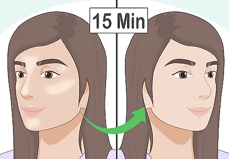 Dust the rest of the powder off. Once 10 to 15 minutes have passed, straighten back up. Use a clean powder brush to dust off any excess powder from your face. Try to get as much of the powder off as possible. Your face may look a little pale or yellow-tinted after this, which is mainly due to powder residue. Don't worry, this will go away after a few minutes.