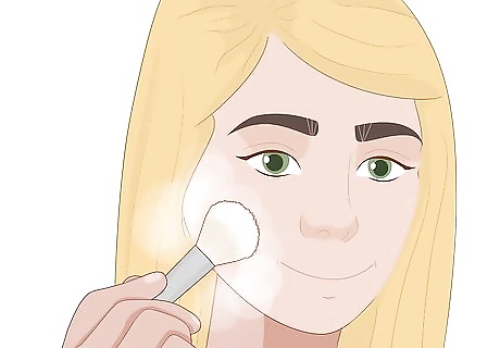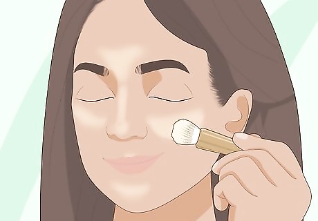 Fix overzealous blush application with a light dusting of banana powder. Blush is one of the last things you apply when doing your makeup. If you apply too much blush, don't worry--you don't have to start over. Simply use a clean powder brush to apply a light dusting of banana powder over your blush to help tone it down. Remember to blend the powder in past the outer edges of your blush.