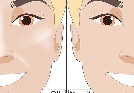 Absorb excess oils and reduce shine with banana powder. Use a powder brush to apply it to the areas that get shiny, such as your nose and forehead. You can apply this powder over your daily foundation, or over a bare face, without any makeup. A light dusting of banana powder should be enough for more people. If you are especially prone to oil, use the method described in the previous section.