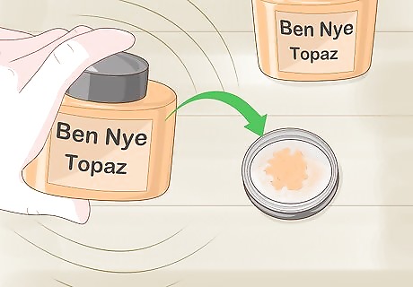 Shake a small amount of the powder onto its lid. A little bit of the powder goes a long way, so 1 or 2 shakes should be enough. Simply screw the lid off and set it down on a flat surface. Shake some of the powder into the lid. It's best to start out with only a little powder. You can always shake more onto the lid. If the powder did not come with a screw-on lid, shake it onto a palette instead.