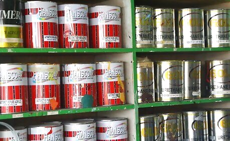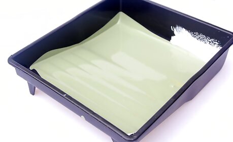 Pour paint into a paint pan. Don’t totally fill the pan, since you’ll just have to pour it back in the can if you don’t use all of it. Pour enough to cover the roller brush when you place it in the bottom of the pan. Leave part of the pan dry so that you can roll the brush against it before applying.