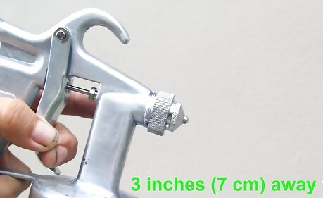 Hold the gun approximately 3 inches (7 cm) away from the furniture. Apply the chalk paint evenly, sweeping your arm back and forth in long, even movements.
