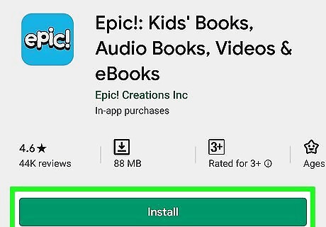 Install Epic from the Play Store. Here's how to install the app on classroom's Android tablet or phone: Open the Play Store Android Google Play. You should find it on the home screen or in the app drawer. Type epic into the search bar. Tap Epic! Unlimited Books for Kids. It's the blue icon that says ″epic!″ in white letters. Tap INSTALL. Follow the on-screen instructions to download.