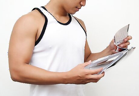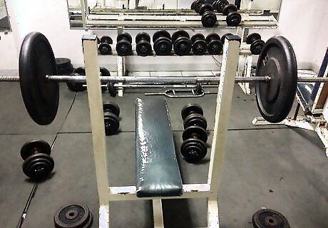 Buy or find a light set of hand weights at a gym. You should always start with lower weights and work up, so if you are creating a home gym, invest in 2, 3, 5, 8 and 10 lb. (0.9, 1.3, 2.3, 3.6 and 4.5kg) weights. You need access to a number of different weights because some muscles can bear more weight than others.