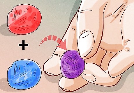 Refrain from painting over your Sugru. Paint tends to flake over and crack when applied to Sugru, so you won’t be able to paint over your Sugru to make it blend in with its surroundings. Instead, mix and match different colored Sugru in order to achieve your desired shade before applying it. For example, if you want to make your Sugru purple, simply mix equal portions of red and blue Sugru before applying it.