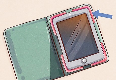 Turn an old book into a tablet case by placing Sugru on the corners. First, take a hardcover book and carefully remove all the pages from the inside, leaving the spine and cover intact. Lay your device on 1 side of the inside of the book and mark the locations of the tablet corners. Remove the device and place globs of Sugru on each of these spots. Slightly bend each of these Sugru globs to form holders for your tablet. For best results, avoid using this DIY tablet case to actually hold a tablet for at least 24 hours. This will give the Sugru enough time to fully set and minimize the risk of the tablet popping out.