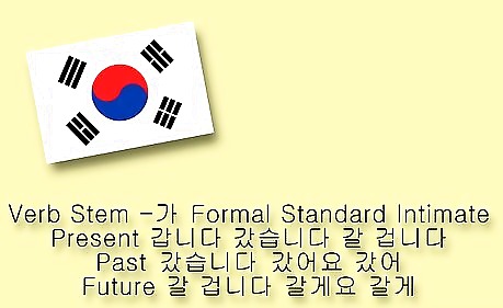 In Korean as well as the tenses there are three different styles of speech (Formal, Standard and Intimate). All three are needed so we'll get learning them right off the bat.