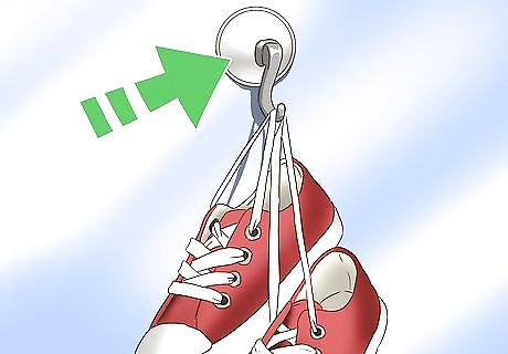 Nail suction cup hooks to the entryway wall for shoe storage. At the store, buy suction cups with hooks. Nail them to the wall near your front door, about one foot off of the ground. Use these to hang shoes that clutter the floor of the doorway. This is great as an organizational tool because it gets the shoes up off of the floor. The basic setup can be moved to any room of the house as a way for extra storage. Nail the hooks higher up on the wall for things other than shoes.
