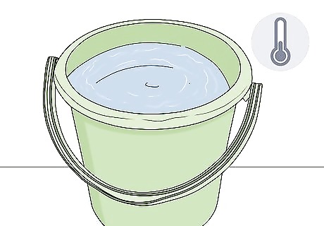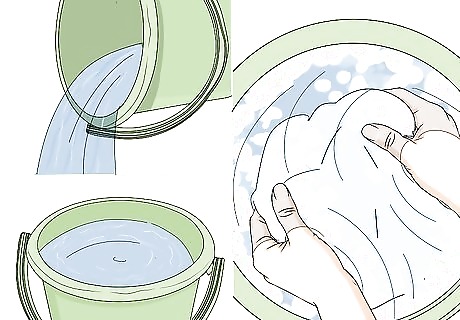 Fill a large container with cold or lukewarm water. Choose a container that’s big enough to comfortably hold all of the sheets you want to wash, with a little extra room left over. You want your sheets to be surrounded with lots of water in order to minimize friction and tangling, both of which can cause your bedding to wear out faster. Washing your clothes in a spacious sink can make setting and cleaning up a cinch, reducing your overall wash time.Tip: Buckets, rubber storage containers, and metal wash tubs are useful for hand washing large items like sheets if you don’t have a suitably-sized sink.