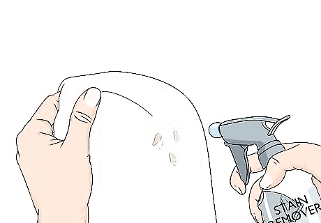 Blot or soak stains to weaken their hold on the fabric. Use an enzyme-based stain remover to spot-treat small stains. For extensive staining, you can also try working a small amount of mild liquid detergent into the stain with your fingertips and giving the sheets a preliminary soak for 10-20 minutes. When soaking stains, squeeze the fabric around the stain periodically to help the soapy water penetrate the affected area. Sadly, there's no guarantee that you'll be able to erase every last trace of a heavy stain from white or light-colored sheets.