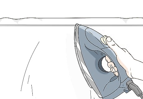 Iron your sheets on low heat to ease out wrinkles. The relaxed, lived-in look of linen is yet another of its many charms, which means that ironing isn't generally required. If you have some serious wrinkles or creases to work out, however, do it with a warm (not hot!) iron while your sheets are still slightly damp to decrease your chances of doing heat-related damage. Never use a hot iron on dry linen sheets, as this could easily ruin the fabric by causing burns or discoloration. Some experts also recommend putting the sheets back on your bed before they’re fully dry. Stretching them taut will make them dry nice and smooth.