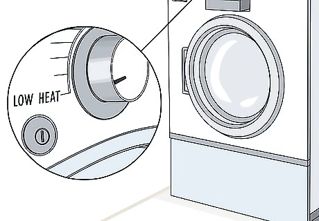 Tumble your sheets on a low heat setting to dry them quickly. Transfer your sheets to the dryer immediately after washing them and select the tumble dry or wrinkle release option. They’ll be mostly if not fully dry within about an hour. This is probably the best drying method available to you if you’re short on time. As you did while washing, be careful not to overfill the dryer. Friction equals fraying. If you want to be extra delicate with your linen, kill the heat altogether and let gravity do the work.Tip: If you’re not planning on using your sheets right away, fold them and put them up as soon as they come out of the dryer to keep them from developing wrinkles.
