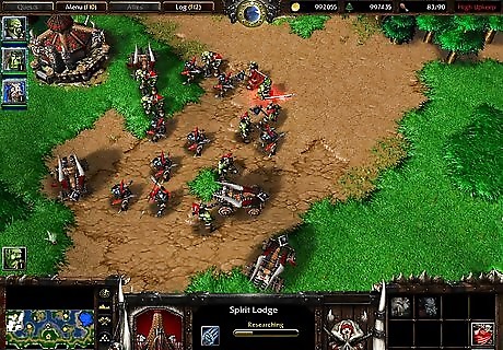Further train your army. When the stronghold finishes, it's your choice if you want the third hero. In the beastiary, train 3-4 wyverns.Win a 1 vs. 1 Battle in Warcraft 3 as an Orc Step 8Bullet1.jpg In the spirit lodge, research shaman master training and witch doctor training, and if any of your units died (other than grunts), replace them.Win a 1 vs. 1 Battle in Warcraft 3 as an Orc Step 8Bullet2.jpg Use a peon to build a tauren totem and research pulverize. After it finishes researching, train 3-4 tauren.Win a 1 vs. 1 Battle in Warcraft 3 as an Orc Step 8Bullet3.jpg