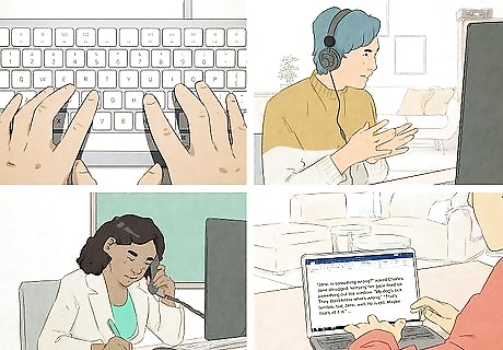 Obtain administrative skills. Learn how to type. Typing and 10-key are essential skills for working at home as an administrative assistant. Gain typing speed and accuracy to increase your chances of securing a position. Some employers also ask that you take an online typing test and submit your score along with your application. Practice speaking professionally. Especially in a virtual position, it's important to clearly communicate facts and details using the right terminology and with a professional tone. Strengthen your writing skills. The work of administrative assistants, particularly when working from home, involves extensive written communications in the form of emails and reports. Take a business writing course if necessary. Learn word processing. Most employers require proficiency in word processing, spreadsheets and presentation applications. A virtual assistant often spends a large majority of time creating and editing these documents. Some virtual assisting certificate programs offer instruction in computer applications.