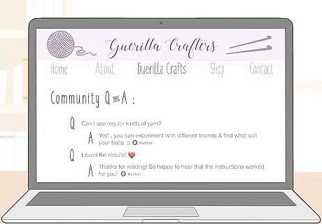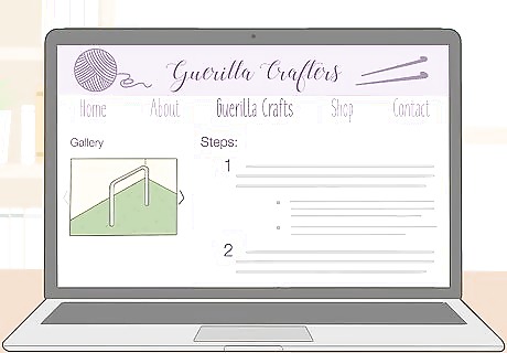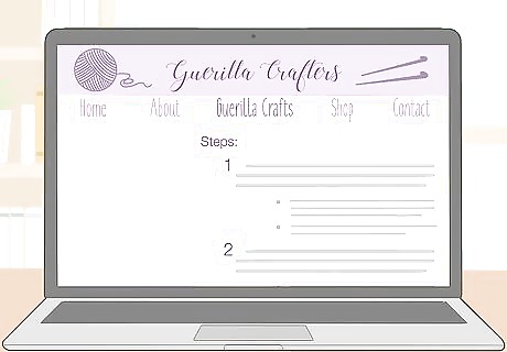 Create tutorials for your guerilla craft projects. As a crafter, you probably know that tutorials are a popular part of crafting blogs. When you create a project, document your process so you can present it to your readers. Then, write out your own how-to guide so readers can recreate your craft. You might create tutorials for things like a yarn bombing project or a craft that readers could leave for someone. In addition to written tutorials, film yourself making a project so you can post a video tutorial. Explain what you’re doing aloud so readers can follow along. Then, edit your video using an app like Photoshop Premiere or iMovie.