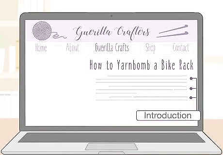 Start each blog with an introduction that previews the post. Your introduction doesn’t need to be very long, and it’s okay to vary the length according to your post. Generally, aim to write 1-3 short paragraphs that tell readers what’s in your blog post. Explain what inspired your project and provide a basic overview of the who, what, where, why, and when. Give readers a taste of what’s to come, but leave the details for later in your post. Write something like, “I've always loved going to the library, but lately I've noticed that it's less busy than it used to be. I think that has something to do with the rusty bike rack out front, which makes the library seem like an unwelcome place. Since I believe libraries are really important to the community, I decided to yarn bomb the bike rack to draw more attention to the library. Last Saturday, I made this dream a reality using 50 skeins of yarn and help from my crafting buddy Lindsey.”