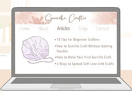 Provide your rules, tips, and suggestions for beginner guerilla crafters. Your unique perspective on guerrilla crafting is what makes your blog special, so open up about your personal thoughts about your hobby. Include listicles with your best advice for other guerilla crafters and people who are curious about it. This will help people find you more relatable and will help you create content that is only available on your blog. For instance, write posts with titles like, “10 Tips for Beginner Crafters,” “How to Guerilla Craft Without Getting in Trouble,” “How to Make Your First Guerilla Craft,” and “5 Ways to Spread Self-Love with Crafts.”