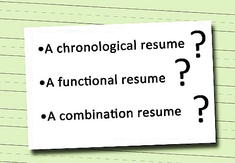 Decide the best way to format your resume according to the job and your experience. There are 3 main styles of resumes. It is best to decide which 1 will work in your benefit before starting to create your resume. A chronological resume highlights career experience. If you have been working as an advertising professional for a long period of time, then this is your best choice. Make sure to include the employer, the location, websites, duration of employment and a list of accomplishments for each job. A functional resume highlights skills that have been acquired through a number of educational and professional experiences. People who have recently starting advertising or who have switched jobs a number of times can group their information according to the skills that are required in the job posting. List the jobs, internships, classes or skills you gained and where you got this experience. A combination resume uses both concepts. This type of resume is best suited to people who have acquired and fostered special skills. The sections are usually organized by experience or skills, with the jobs listed chronologically underneath each section.