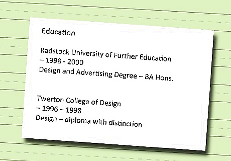 Include a short education section at the bottom. If you went to an advertising school or a school with a good alumni network, this may help you to form a bond with potential employers. Make this a short section.