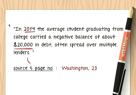 Keep track of your research sources. Write down where you get your information so you can cite the sources. Typically, the bibliographic information for a source includes the author’s name, article title, publication title, year, page number, and publisher. Choose a citation style sooner rather than later, so you can compile citation information in the correct format. MLA, APA, and Chicago are some of the most common citation styles.