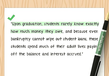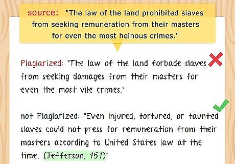 Avoid plagiarism. When you are looking at other sources, be careful about how you compile information. Sometimes, people copy text into a single document to use as notes for their article. But in doing so, they risk potential plagiarism because the copied text gets mixed up in their own written work. Be sure to keep careful track of which writing is not yours. Don’t copy any text directly from another source. Paraphrase this text instead, and include a citation.