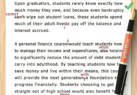 Comb through for grammatical errors. Even when an article is well-written, it will not be taken as seriously if it has grammatical errors or spelling mistakes. Make sure your writing is forceful by cleaning up your grammar. It’s helpful to print out a hard copy of your article. Go through it with a pen or pencil to catch mistakes. Then go back and correct these mistakes on the computer.