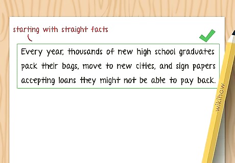 Write your introduction. A compelling introductory paragraph is crucial for hooking your reader. Within the first few sentences, the reader will evaluate whether your article is worth reading in its entirety. There are many ways to start an article, some of which include: Telling an anecdote. Using a quote from an interview subject. Starting with a statistic. Starting with straight facts of the story.