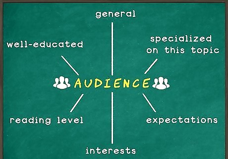 Consider your audience. Think about who is going to read your article. You need to consider the reading level, interests, expectations, and so on. For example, if you are writing an article for a specialized academic audience, your tone, and approach will be vastly different from if you’re writing an article for a popular magazine.