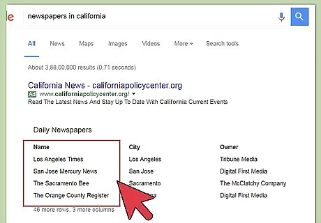 Pick a newspaper or newspapers. Decide on a newspaper that is most appropriate for your purposes and for your audience. Are there certain people you want to reach? Your local newspaper is always a good choice, but you may also want to pick one in your hometown. Local newspaper. This is a good way to inform your friends, coworkers, and neighbors. National newspaper. By using a national newspaper, you'll be able to share your announcements with friends and family who live around the country. Newspaper in grandparents' hometown. This way the grandparents will be able to share the birth with their friends and others in the community.