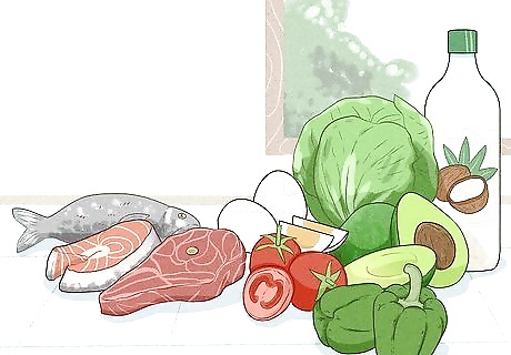 Eat keto-friendly foods throughout your eating period. Help guide your body to ketosis by eating a variety of foods approved for the keto diet. Focus on protein-rich foods like seafood, meat, and eggs, along with cheeses, above-ground vegetables, and nuts. Incorporate these foods into your eating window, which will help you maintain a state of ketosis. Since this is a low-carb diet, try to avoid most carbs, fruits, starches, and sugars.
