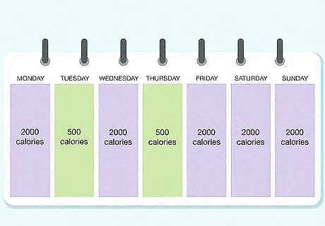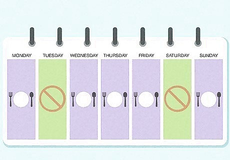 Try alternate-day fasting throughout the week. Eat normally for 1 day, then take a full day to fast. Return to your normal eating schedule again, then switch to fasting for another day. Ideally, don’t do more than 2 fasts during the week while on an alternate-day fasting schedule. For example, if you ate normally on Monday, you can fast completely the following day. Eat normally again on Wednesday, then take to fasting on Thursday. Try to maintain your usual low-carb eating habits during the week. If you don’t want to commit to a total fast, you can limit your calories on your fasting days.