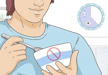 Don’t eat anything during your fasting period. Try to resist any hunger pangs that arise, no matter how strong they are. Remind yourself that you’ll be able to eat soon, and that the fasting period will help you maintain a state of ketosis. As you reach ketosis, these fasting periods will become easier to deal with. The only exception to this is the 5:2 diet, where you only eat 500-600 calories on your fasting days.