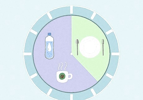 Drink unsweetened or calorie-free beverages during your fast. Reach for a glass of water, or any other drink that doesn’t have any calories, like tea or black coffee. Try to diet drinks, since they’re chock full of artificial sweeteners. If you’re on the 5:2 fasting schedule, you have a little more wiggle room.