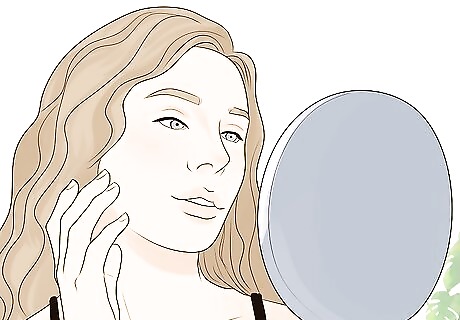Practice relaxing your face in a mirror. Etiquette coach Jules Hirst tells us that a great way to understand your face and expressions is to look at yourself in a mirror or in a photo or recording. Take a deep breath to relax your face, then examine your expression, or have someone else give their opinion. Then, practice holding your face in a more pleasant expression, like a slight smile. Keep doing this for 5-10 minutes at a time to “train” your face out of RSF. A more “pleasant” facial expression includes a slight smile (like the Mona Lisa), slightly wrinkled eyes, and a relaxed jaw. Subtlety is key; if you’re too animated or dramatic, it may look fake. One simple drill is to relax your eyebrows and put a small piece of tape between them. Wear the tape for 10-20 minutes while attempting not to wrinkle it by moving your brows.
