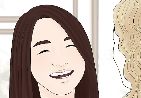 Become a more active listener and communicator to express your emotions. If your natural expression is a little stiff or sad, you may have to work a little harder to let people know that you’re engaged and reacting well to a conversation. One way to do this is through active listening. During a conversation, take extra care to make eye contact, smile when appropriate, and nod to show that you’re listening. Your body language also does a lot of talking. Avoid crossing your arms, and face your torso toward the other person to show you’re engaged and welcoming. This also means you may need to be more direct with your emotions so people know what you feel, like saying, “Thanks for being here, I love to see you,” or, “I’m so excited to see this movie!”