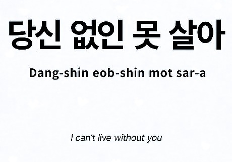 Dang-shin eob-shin mot sar-a (당신 없인 못 살아): “I can’t live without you”Want to take your romantic confession to the next level? Say “dang-shin eob-shin mot sar-a” instead of (or in addition to!) “sa-rang-hae.” It translates to “I can’t live without you,” and is a pretty powerful way to pull on someone’s heartstrings.