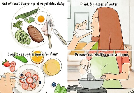 Nutrition If you want to focus on nutrition, registered dietitian Amy Chow advises focusing on eating more “whole foods, because whole foods are often quite nutrient-dense, and they don't necessarily come with a nutrition label. So these are your whole fruits and vegetables. We know that they're packed with vitamins and minerals, but they're low in calories." At the same time, adds board-certified physician Sari Eitches, MBE, MD, “have a good combination of macronutrients, protein, high fiber, carbohydrates, and fat, and have…food that’s closest to its whole food unprocessed ingredient as possible." Certified nutrition consultant Lyssandra Guerra also recommends “alternative foods and vegetables. So, this week, let’s focus on arugula and romaine. And let’s focus on broccoli and cabbage—try introducing two to four new vegetables a week.” Registered dietitian nutritionist Kelly Gomez also states the importance of “diversifying your diet, because humans need to get a lot of variety. There's research that’s shown, if we can get 20+ different types of plant foods in our diet in a week, that can really impact our gut microbiome and our health.” However, it’s also important to avoid restrictive eating. “Think more holistically about food as nutrition that feeds us,” says Dr. Eitches. “There’s no food that is ’illegal,’ or not allowed, or a ‘cheat.’ Rather, have awareness around things like, if it’s the first thing in the morning and we’re hungry and need fuel, it’s not the time for fun food. That has to be a conscious decision.” Tara Coleman, a clinical nutritionist, shares this viewpoint, advising that you don’t focus on what’s being taken away, but what you’re adding. “For instance, instead of ‘I’m not going to have carbs at dinner,’ try ‘I’ll have protein and carbs, but I’m going to add some extra vegetables to get more nutrients in there.’”